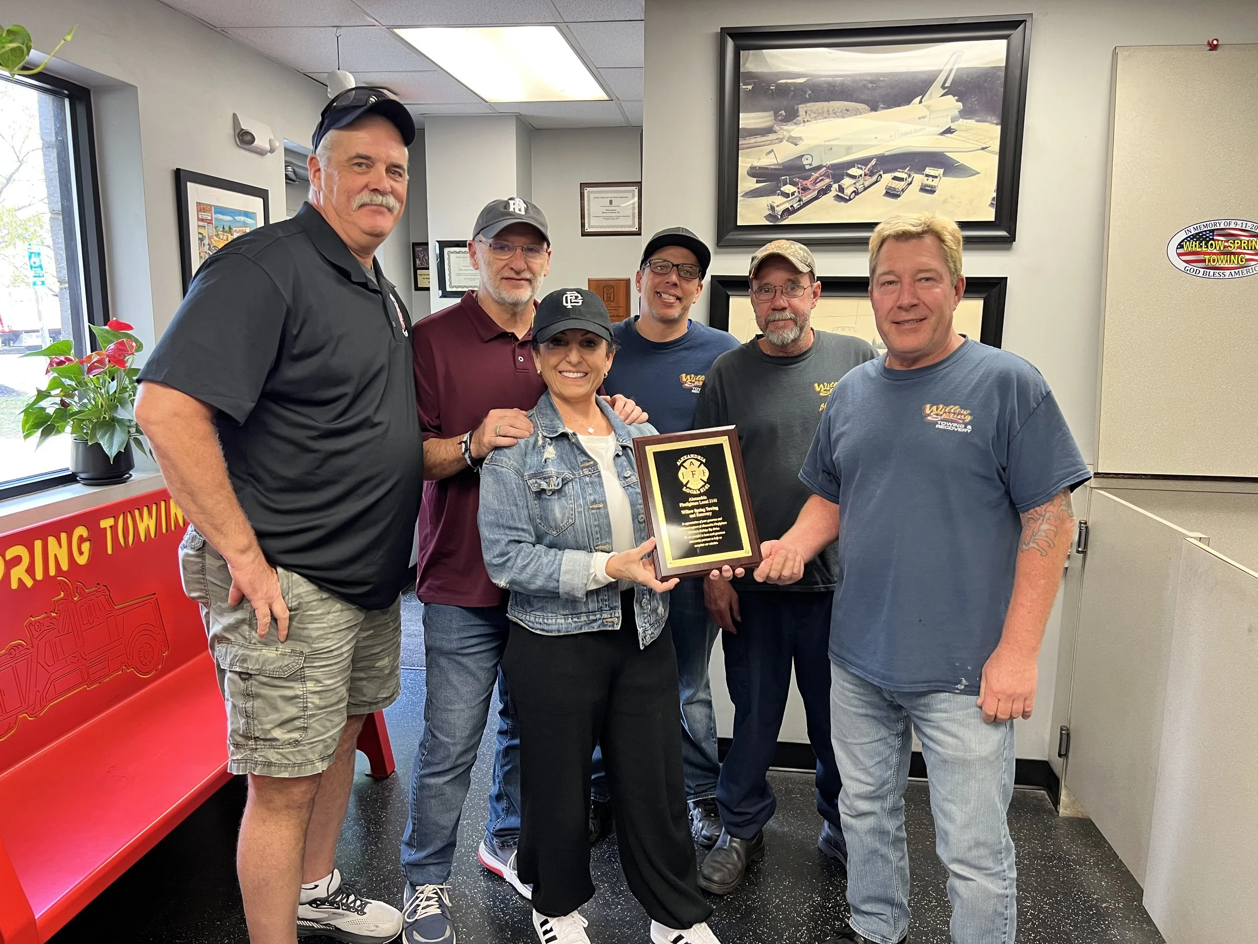Alexandria Firefighters Local 2141 recently presented a plaque to our friends and community partners at Willow Spring Towing and Recovery to thank them for their continued support and incredible generosity to the Alexandria Firefighters Children’s Holiday Toy Drive. Owners Chip and Maria Herring (the wonderful parents of L2141 member and E208 driver FF Clint Herring) and their staff have been major supporters of the toy drive for many years, and we cannot thank them enough for their continued support of the toy drive. We truly appreciate all their support of the Alexandria Firefighters Children’s Holiday Toy Drive.